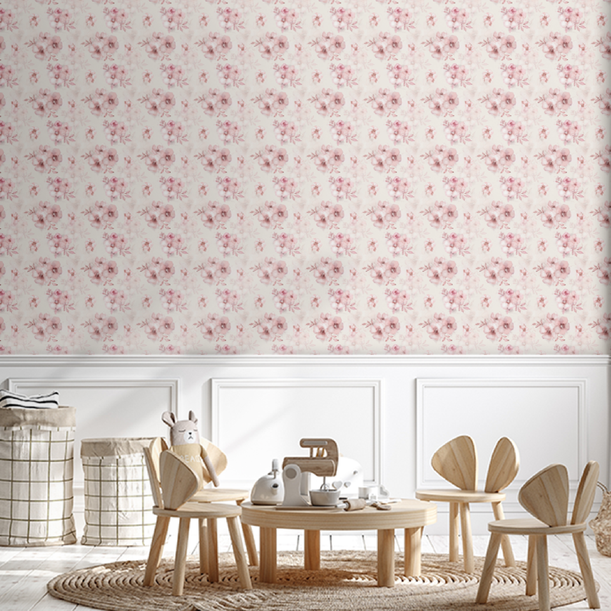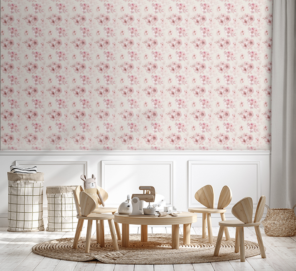 Breng een subtiele en rustgevende sfeer in de kinderkamer met ons prachtige bloemenbehang in zachte kleurtinten. Dit behang voegt een vleugje sereniteit toe aan de ruimte, waardoor het een perfecte plek wordt voor je kleintje om te spelen, te rusten en te dromen.