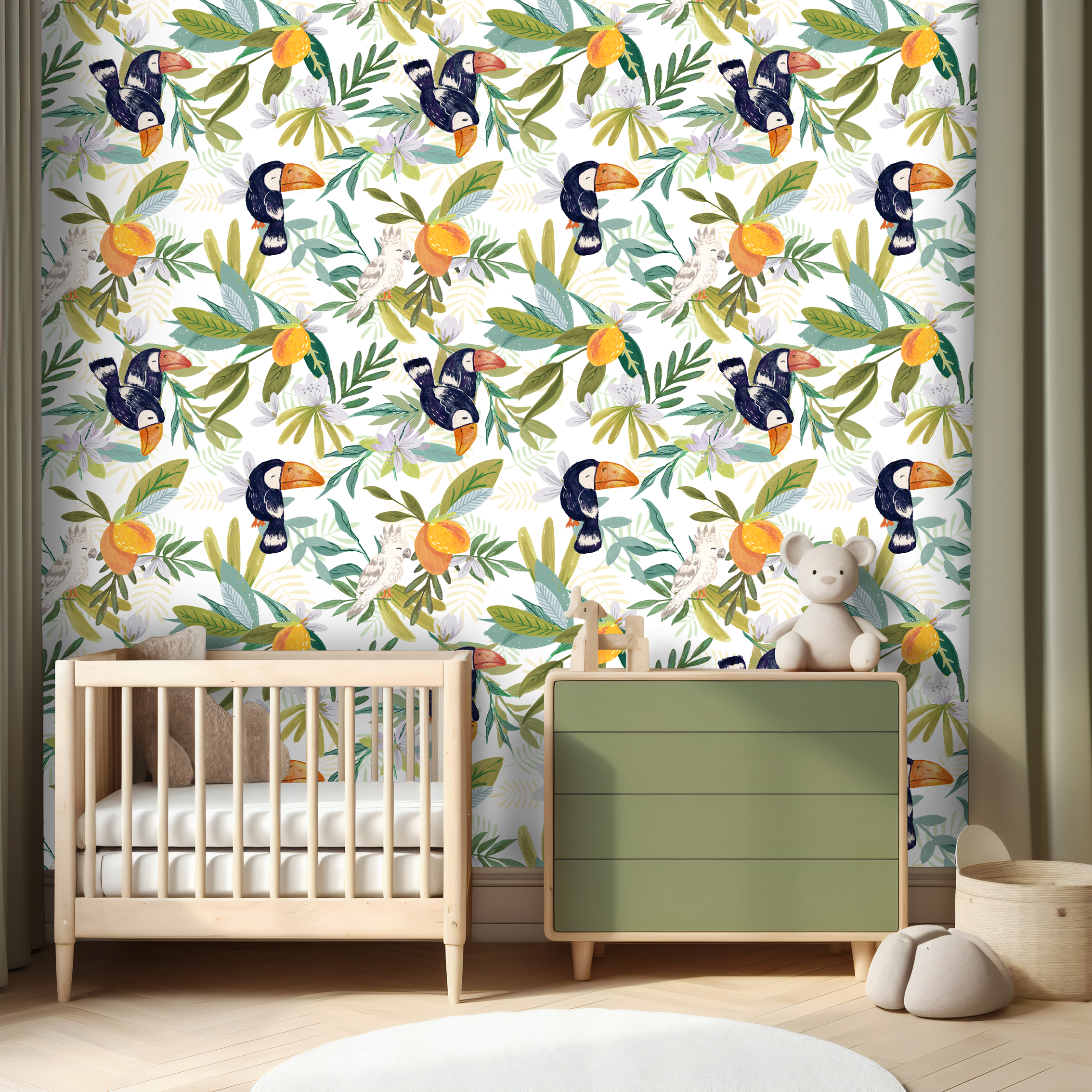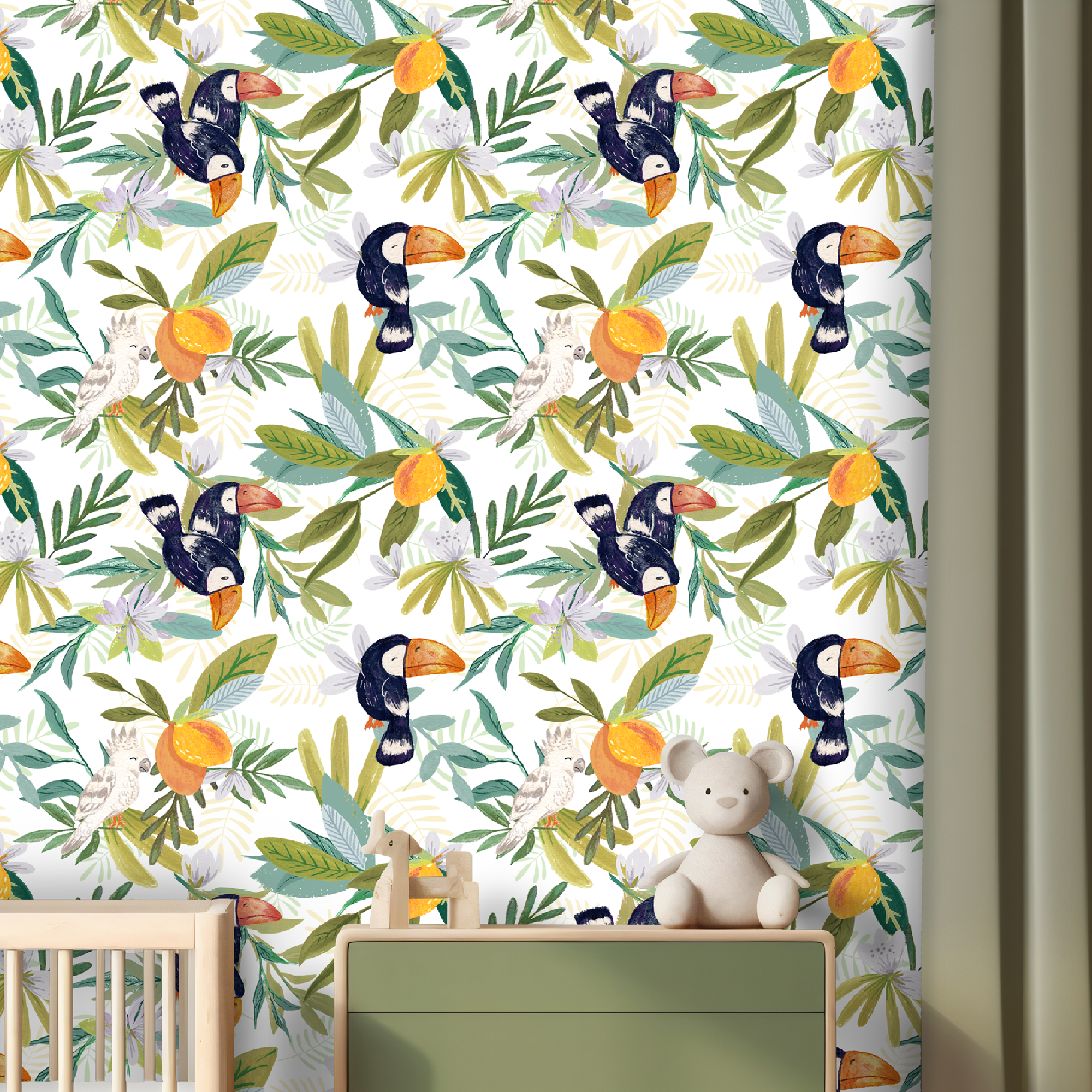 Maak van de kinderkamer een plek vol kleur en vreugde met ons prachtige tropische vogelbehang. Laat je kinderen opgroeien omringd door de schoonheid van de natuur, terwijl ze zich dagelijks kunnen verwonderen over de exotische vogels die hun kamer sieren.