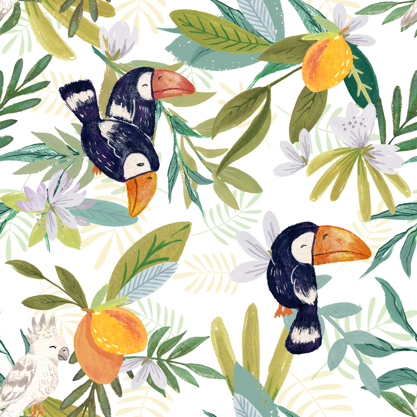 Onze collectie tropisch vogelbehang zit boordevol prachtige illustraties van exotische kaketoes en sierlijke toekans. Deze ontwerpen prikkelen de fantasie en zorgen voor een speelse, levendige omgeving waarin kinderen zich helemaal kunnen verliezen.