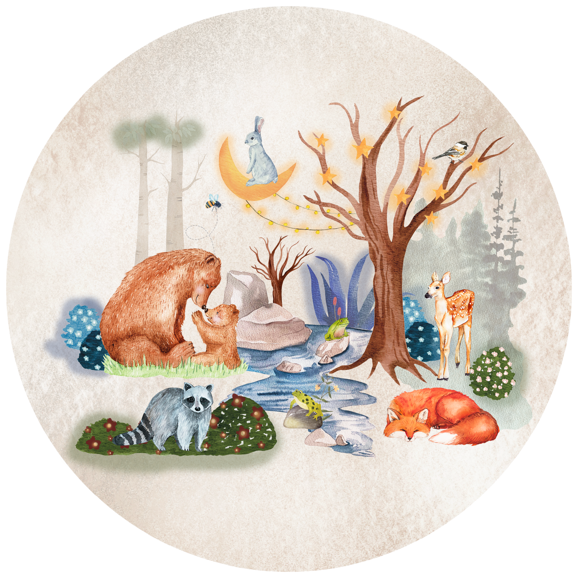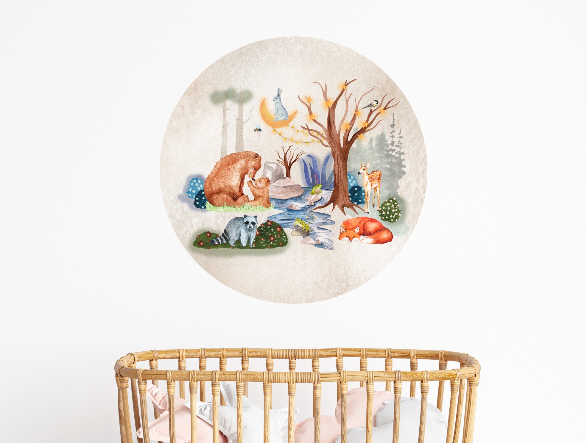 Breng de natuur naar binnen en creëer een warme, uitnodigende sfeer met onze betoverende behangcirkel met dieren in het bos. Een onvergetelijk stukje natuur voor een onvergetelijke kinderkamer.