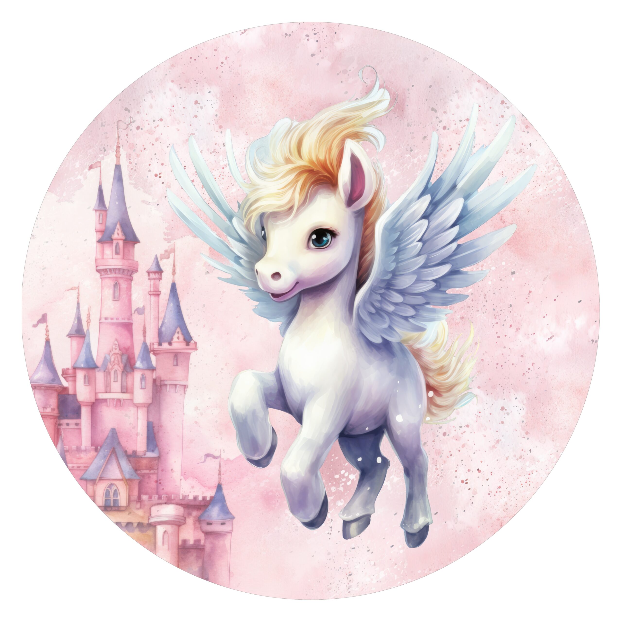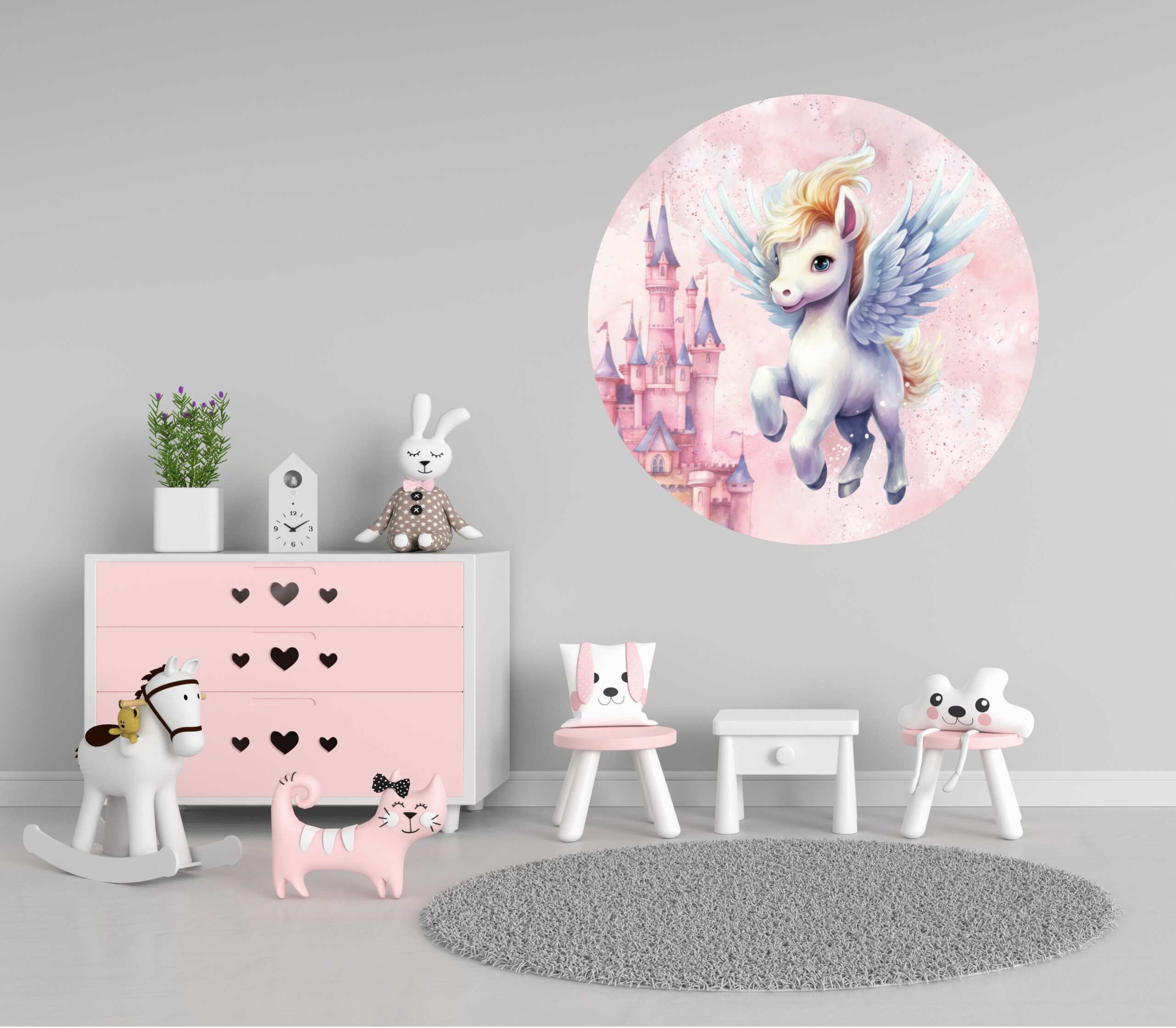 Maak je babykamer / kinderkamer compleet met deze behangcirkel. Deze pegasus is een super kleurrijke aanvulling voor je muur.