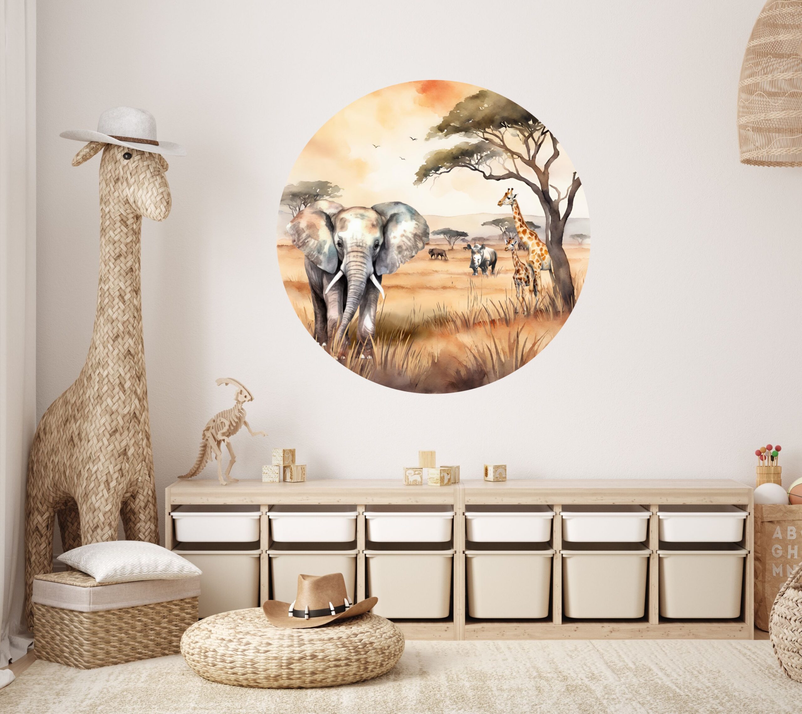 Met onze adembenemende behangcirkels wordt elke dag een nieuw avontuur en elke nacht een reis door de betoverende wereld van de savanne. Creëer herinneringen die een leven lang meegaan en geef uw kind de geschenk van verwondering en verbeelding. Breng de majestueuze schoonheid van de Afrikaanse savanne thuis met onze behangcirkels en laat de dromen van uw kinderen vliegen, hoog boven de uitgestrekte vlaktes van hun verbeelding.