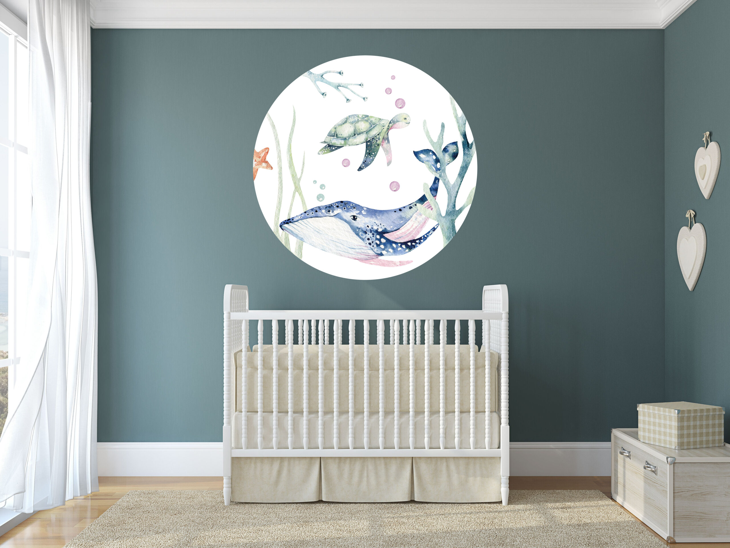 Maak je babykamer / kinderkamer compleet met deze behangcirkel. Super leuke zeedieren print als echte aanvulling op jouw baby / kinderkamer
