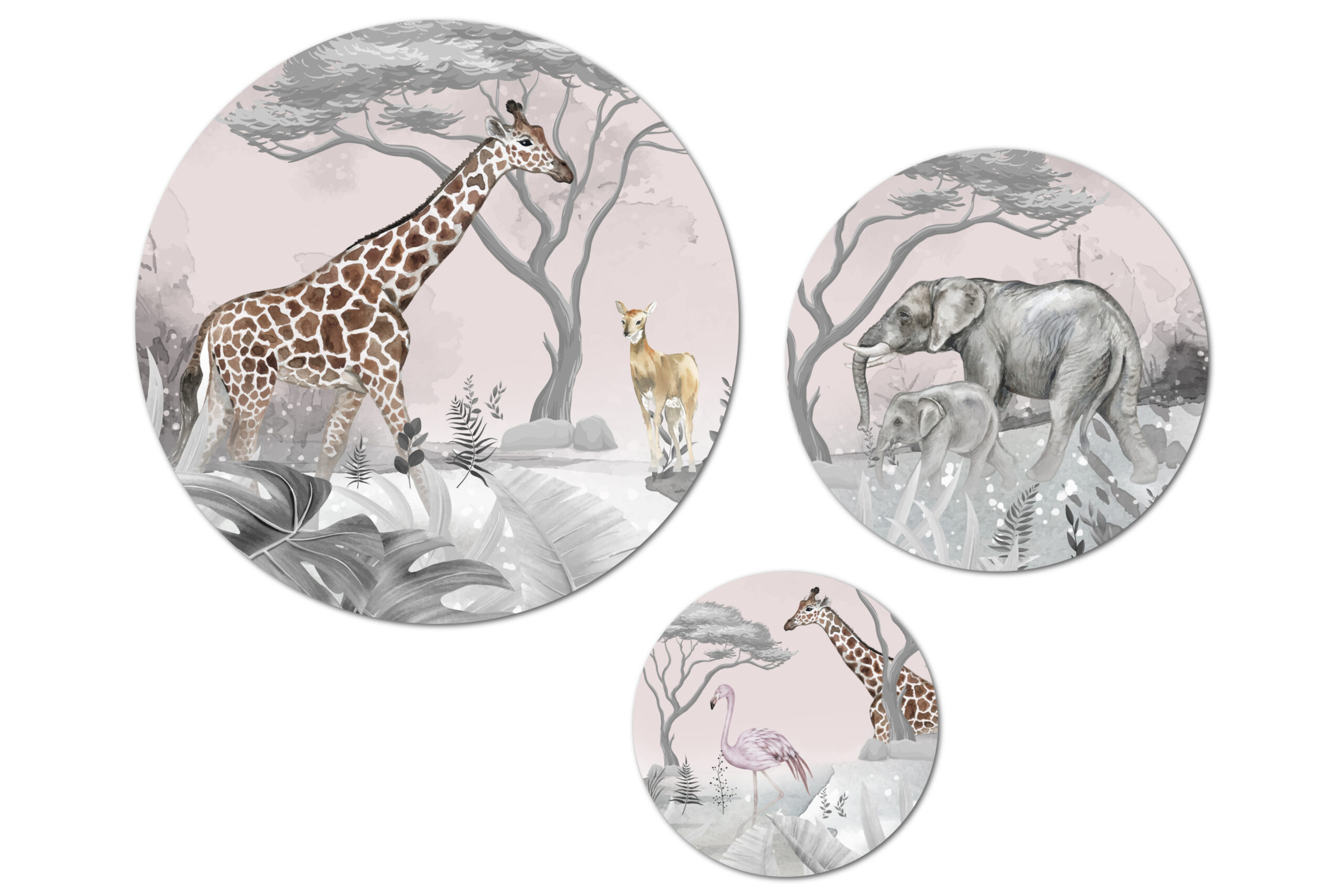 Muurcirkel set van 3 – Giraf op Safari