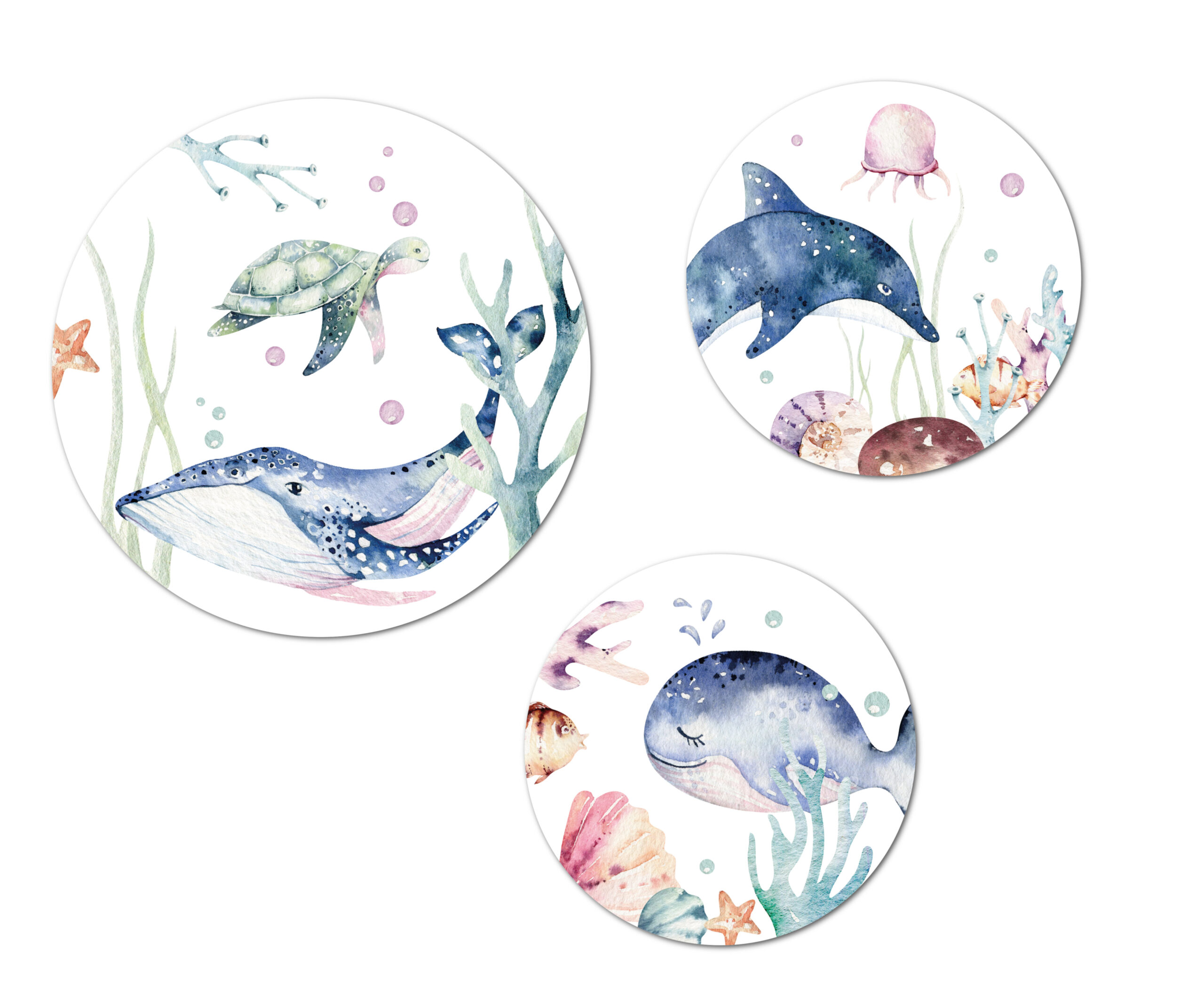 Heb jij een onderwater thema op de baby / kinderkamer? Dan mag deze muurcirkel set zeker niet ontbreken! De set bestaat uit 3 verschillende muurcirkels.