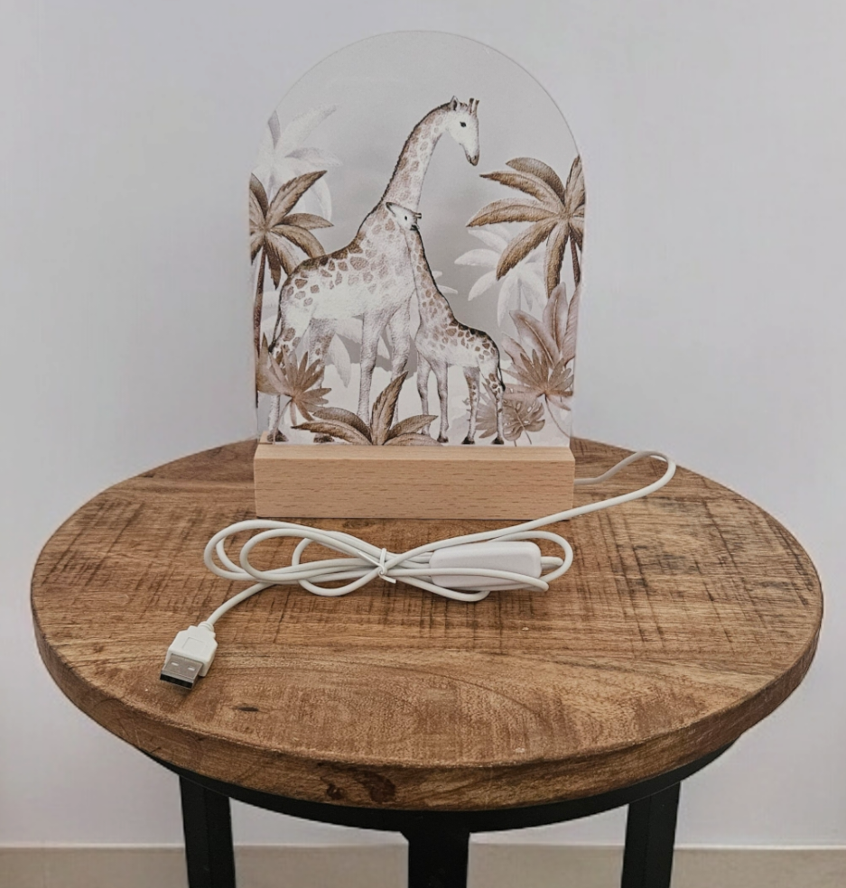 Is je kindje bang in het donker en slaapt je kindje liever met een lichtje aan? Met dit nachtlampje slaapt je kindje als een roos. Dit mooie nachtlampje bestaat uit een unieke afbeelding op Acrylglas en een houten voet met verlichting. De kamer wordt omgetoverd met dit sfeervolle warme licht dat de afbeelding doet shinen.