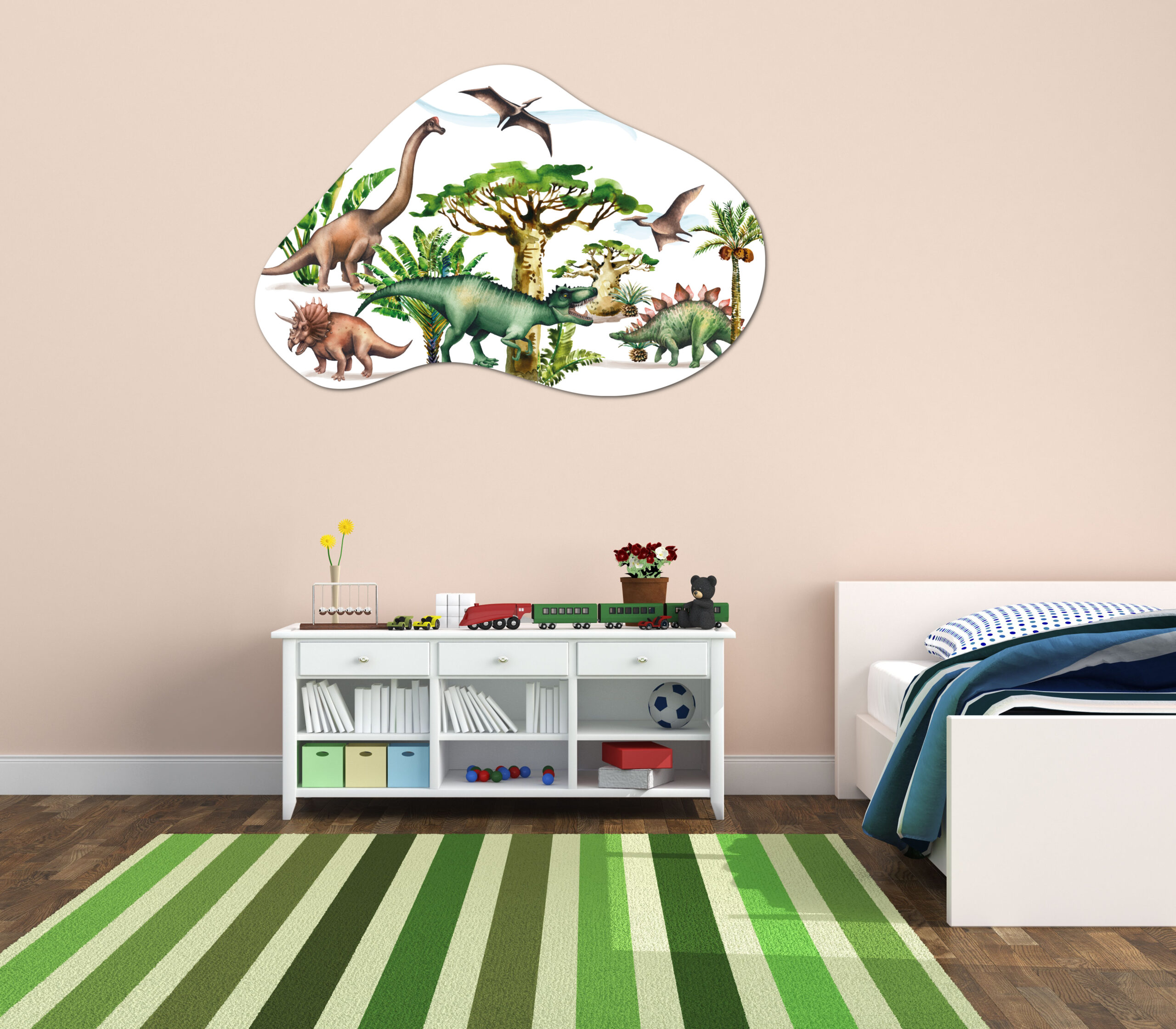 Raawwrr! Heb jij een dino thema op je kinderkamer? Dan kan deze Eye-catcher zeker niet ontbreken! De Organische vorm met dino’s maakt je baby / kinderkamer helemaal af!