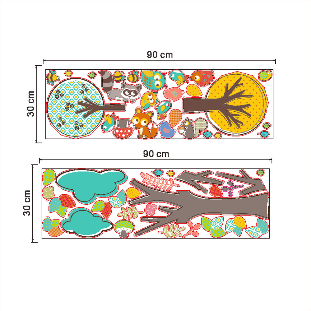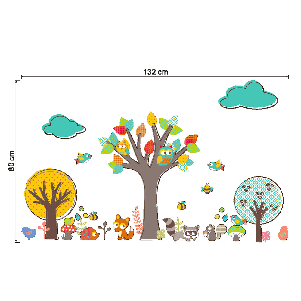 Deze dieren in het bos muursticker geven een fleurige uitstraling aan je kinderkamer / babykamer. Er is veel op te zien in dit kleurrijke bos.