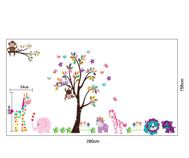 Muursticker – Boom met vrolijke dieren in de jungle